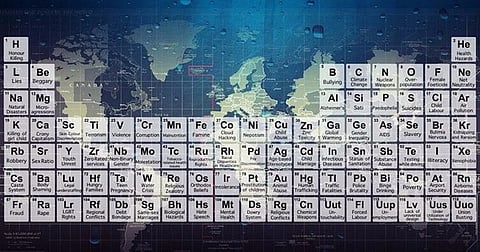Whilst most of us suffered from nightmares and constant power naps to cope with the monotony of the periodic table, Kaanchi used her imagination to its optimum. It dawned upon her how the initials of each element could be used an acronym to signify a worldly problem. She strategically placed these elements with the map of the world in the background. Along with this, some elements like Xenon (Xe) and Phosphorous (P) stand for movements and social issues that are gaining momentum today like Xenophobia and Paedophilia.