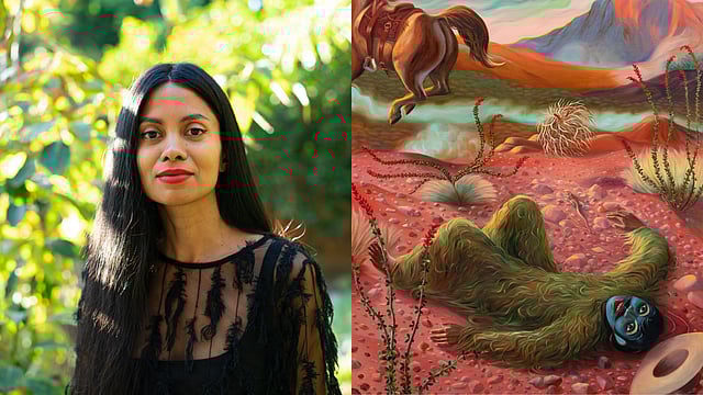 Shyama Golden (b. 1983, Texas, USA) is a Sri Lankan-American artist based in Los Angeles whose work merges figurative realism with elements of South Asian mythology to create surreal, symbolic narratives. Drawing on her background in graphic design and a career in commercial illustration — with clients ranging from HBO to The New York Times — Golden’s paintings explore identity, memory, and cultural hybridity through a distinctive visual language.