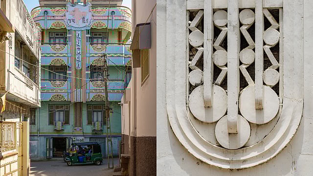 Tyagi’s photographs capture details of balconies shaped like wings, doors framed with rhythmic curves, and pastel hues that refuse to fade under the western sun. Each image highlights how residents adapted this foreign style to suit their cultural and climatic realities, thereby embedding the global modernist impulse within the textures of local life. The result is what the photographer calls "Indo-Deco”: a dialogue between imported design codes and the language of Gujarati domesticity.