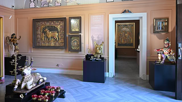 Presented by Raseel Gujral Art Legacy at Bikaner House’s Arzaani Atelier Privé, the acquisition-led exhibition ‘Dakhin | Dilli – A Sacred Dialogue’ gathers devotional works and ritual objects from North and South India, tracing centuries of exchange along pilgrimage routes, temple networks, and itinerant artisan traditions.