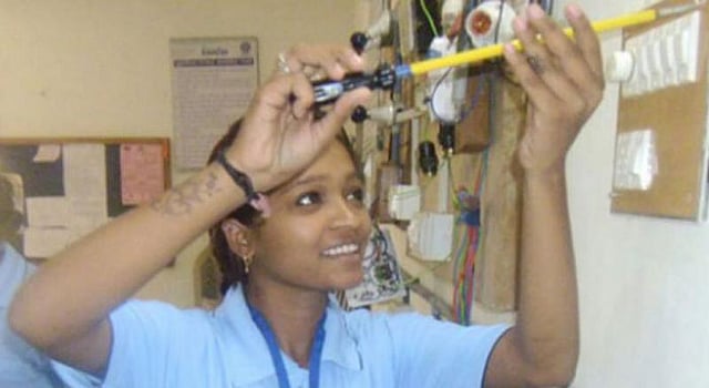 Two students are readying their motors for a project that will enter the inter-college competition that will culminate in the National level competition this year. While one has created a set-up where one can control the speed of the Conveyer belt that runs on a D.C motor with their cellphone’s bluetooth device, her colleague is making a solar-powered car with the help of a toy model. 20-year-old Ashwini Pandhare thinks her Bluetooth controlled motor will help industries that have conveyer belts, or could be used in locomotives as well. She is one of the 17 girls in the senior year of electrician training at Industrial Training Institute (ITI), Thane that begun this course two years ago.