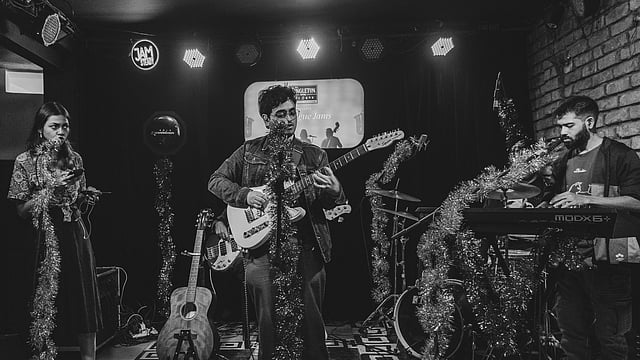 For almost a month between November and December 2025, I followed Dindūn around Kolkata as the band prepared for their annual Christmas Eve Special at Skinny Mo’s Jazz Club. I sat in on their brainstorming sessions at Sourjyo’s home studio in Jadavpur and on one of their full-band rehearsal sessions with music producer and multi-instrumentalist Subhagata Singha aka Rivu (@rivuperson), drummer Mehul Bhattacharya (@bengalidrummerboy), and singer-songwriter Proiti Seal Acharya (@_proiti_).