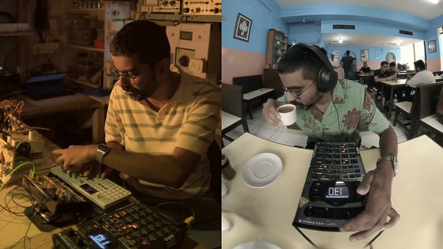For his Alserkal residency, Sakré visits some of his favourite Bangalore haunts, performing quicksets in places that carry their own cultural and historical weight, and capturing them on video with Kiran Kallur. At the Indian Coffee House on MG Road, a democratic café beloved for its filter coffee and standing counters, he layers beats over a classic Ilaiyaraja flip, channeling the hum of conversation and the ritual of caffeine into music.
