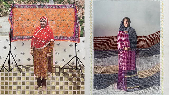"In my practice, aesthetics and activism are not at odds: they are woven together, like the threads in the embroideries the women create," Malik says. "The visual beauty of the work is intentional; it gently draws viewers in and then reveals the weight of the stories stitched into every portrait. In Nā́rī and Jāḷī, collaboration is not just a method — it's the core of the work. Many of the women I work with have survived domestic violence or have lived in forced seclusion. Through image-making and embroidery, they reclaim agency over how they are seen and represented."