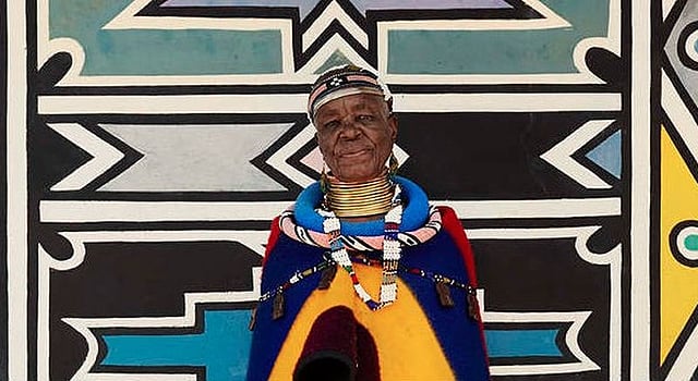 Mahlangu was taught the traditional form of the art by her mother when she was a little girl. “It wasn’t until she was asked by a museum she was working at to paint a traditional pattern on one of their walls that her own distinctive style was born, however” reports the Chromologist. Instead of the traditionally used colours of black soot, chalky white and orange, Mahlangu used commercially made paints in bright colours that captivated the world. In 1991, she was invited to paint a prototype of the BMW 525i model as one in a series of BMW Art Cars. Esther soon created a masterpiece of Ndebele art that “will never be subjected to driving on the road, but willexist exclusively as a work of art,” reports Open Africa.