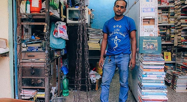 After the initial starstruck few days, Birju’s attention soon turned to finding a means for livelihood and his first job in Mumbai was a rather unusual one. There were new 5 rupee notes that had just been put into circulation, he recalls, and he would stand in line at the Reserve Bank of India for hours at a time to get bundles for ‘Marwari saabs’ who would give him generous commissions in exchange for his time and patience. From there, he flitted to selling agarbattis and working at tapris for a while before starting work assisting a vendor of pirated CDs in Colaba. He interrupts himself - almost like a sidenote - to mention that his affair with books actually started here, when he started helping out with the neighbouring shop that sold books.
