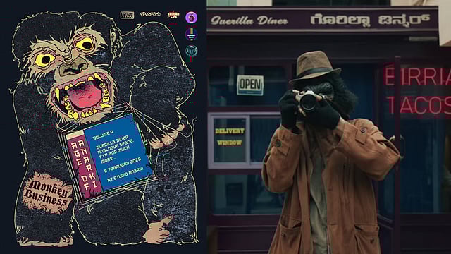This article covers Studio Anarki and their upcoming Monkey Business: Vol 4 – ‘Age of Anarki’, a one-day warehouse takeover on February 8 combining music, food, design, fashion, and subcultures. It includes the event’s origins with Guerilla Diner and Analogue Space, the boxing-ring performance by Flying Turquoise Panthers, sound and record curation by Analogue Space, live tattoo sessions by Fluid Ink Tattoo, thrift pop-up by Second Life Clothing, food by Guerilla Diner and Burnt Ends, coffee by Benji Coffee, ticket pricing, and the overall positioning of the event as a multi-sensory showcase of Bangalore's independent, maker-driven creative ecosystem.