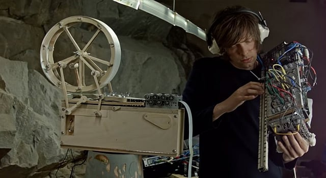 Swedish musician and bandleader of Wintergatan, Martin Molin, mesmerised us all earlier in March when he used 2000 cascading steel marbles, tracks, pulley devices, perfectly carved wooden parts and funnels to create his own mind-blowing musical instrument. Creatively-crazy minds like Molin’s rarely sit still and he’s back with two new homemade instruments of his creation, and we’re so glad that he is. He refashioned a 4-year-old manual music box into a more complex creation to improve the instruments resilience and sound quality. Like traditional music boxes, the tinkering sounds are the result of hand-punched programming paper being fed through the mechanism through rollers and a motor, with a paper-pulling machine made out of Lego Technics components that, as explained by Gizmag, are “connected to the motor by metal cogs and chain. A laptop power brick plugged into the mains powers the motor.”
