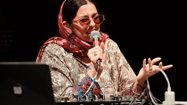 This went on to become ‘My Mum Told Me Not To Marry An Atheist,’ a performance that mixes stand-up and DJing. It's an intergenerational relationship between a Dadi (grandmother) who is a radio-presenter and DJ and her granddaughter Kamal, exploring their relationship through love, marriage, and the fact that they're both intergenerational trouble-makers. “The first performance was in September 2023 at Contact Theatre in Manchester where my husband James Baker and I focused more on spoken word, projection, and architecture,” shares Amina. “The show kept changing over the past 3 years, developing as a stand-up special and then last summer we performed at the Edinburgh Fringe Festival and we wanted to intersect all these disciplines that we love and especially my love for DJing.”
