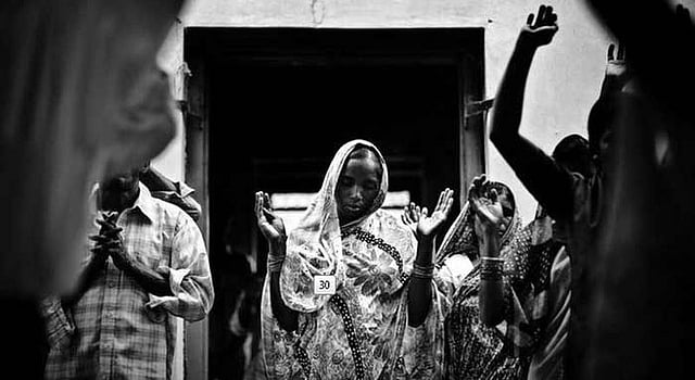Poignant in black-and-white, the photographs feature moments from the lives of some of these villagers at a momentous point in their lives. Unmistakably cinematic and disquieting, the series translates the intangible apprehensions following the communal riots in a highly evocative manner.