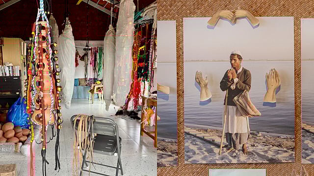 Regionally specific and socially grounded, these works are born of communities. Prabhakar sources his materials in Kolhapur bazaars and works with local artisans; Akshay collaborates with women potters, nomadic storytellers, and theatre groups in Assam. Both are committed to recovery, radical empathy, and a collective memory that's one part rooted in Ambedkarite anti‑caste consciousness, the other in folk psychogeography and oral tradition. Together, their practices challenge modern nation‑building’s impulse to homogenise, omit, and even romanticise without remembering whose labour underpins each handiwork or folk custom.