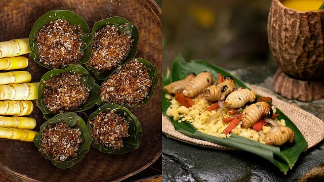 Insects, for example, are often looked down upon but across the Northeast, they’re a rich, sustainable source of protein that’s long been part of tribal diets. Across Assam, Nagaland, Manipur, Arunachal and Meghalaya, grasshoppers, bamboo borers, stink bugs, weaver ants, termites and silk‑worm larvae are used to prepare dishes like red ant chutney or fried water bugs as staples.