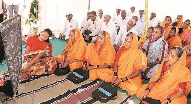 Although they are yet to add all proper facilities and amenities for the school, the classes commenced on 28 January with 25 men and women in attendance. A small decorated tent in the clearing serves as the classroom for the students. Women don orange sarees and men are in white uniforms while they discuss their prized possession, their school bags. Two residents of Mumbai, Sophie Ahmed and Suchi Mehra who had heard about Bangar’s elderly education helped boost the confidence by sending uniforms and bags that serve as encouragement and pique their interest in school.