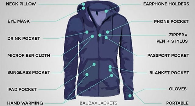 What’s so special about it? Well, let’s just start by dissecting a few of the 15 main features we wish every single ‘sensible’ multi-purpose jacket in the world would include. These include more utilitarian ones like an in-built neck pillow (no, really, it’s that amazing) a detachable hood, an eye mask, in-built gloves so you don’t feel cold, nine tech pockets of all sizes to name a few. Then we move on to the more ingenious ones. The Koozie Drink Pocket is one of our favourites, while there’s also a compartment specifically for your earphones (hallelujah). They also come in four distinct styles to suit every kind of person. You’re always traveling on business? No problem, get the wrinkle-free blazer style. You’re a college student who lives in hoodies and shorts? Still nothing to fret about, you can get a sweatshirt style Baubax jacket. Additionally, they also have a bomber version and a wind-breaker version and they’re all priced between $150 - $200.