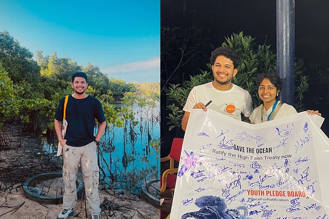 Environmental deterioration also impacted his health, as he said he was a child of monsoons and medication, plagued with allergies that left him constantly sneezing, wheezing, and sitting out sports. His journey as a marine conservationist was then born out of the realisatiown that he and the ocean shared the same struggles. “I couldn’t breathe freely, and in time, I noticed neither could the ocean," says Ajay. "The pollution that clogged my lungs also choked the sea. My healing and hers were not separate stories after all.” So Ajay started writing stories, creating art, and sparking conversations, first out of frustration, then out of hope, all to help others understand the ocean as he did, not as scenery, but as a form of inheritance.”