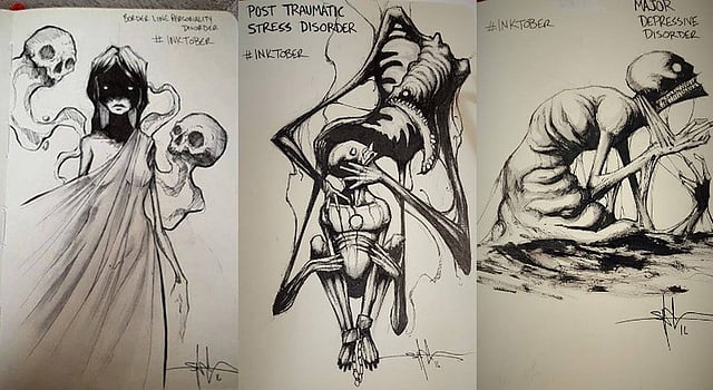 This Inktober, he decided to highlight mental illness, and each day he gave a face to a different disorder. He lent his signature style to each piece and the chilling representation really emphasises the struggle that people face every day.