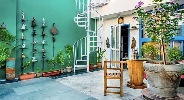 Owned by Saskia and Tarpan Patel, this is a sculptor’s studio converted into a beautiful space filled with vibrant colours, art and antiques. Not to be completely cliche, but this cozy abode, designed by Saskia herself, truly lies as an oasis near the city centre.