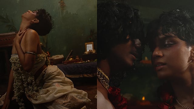 Aksomaniac, born Aron Kollassani Selestin, has long worked at the intersection of the personal and the musical. Trained in Western classical music but largely self-taught as a producer, his plays with different genres without needing to separate R\&B from jazz, or Carnatic from pop. He lets them coexist, not as stylistic choices but as parts of a lived experience which is multidimensional in somany ways. 'Kanmashi' continues this instinct — drawing on both the cultural and the spiritual to articulate the layered tensions of identity. Referencing figures like Gandharvan and Manmadhan, mythological beings associated with music and love, the song makes space for queerness within the symbolic language of the sacred.
