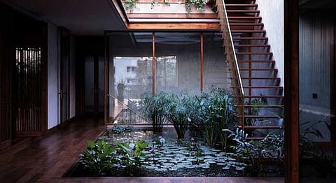 A re-programmed house in Pali Hill represents a minimalistic design structure with the added plus of comfort and privacy. Built with an additional floor and terrace, the house is enclosed within layers of glass, wooden screens, planted trellises and curtains which add a sense of isolation from the surrounding urbanity. The house opens out onto a timber deck and garden, and is discovered by a flight of staircases which opens onto transitional spaces on each floor. On the first floor warm light renders a generous glow to the family room, while a corridor leading to the bedrooms culminates into a window space.