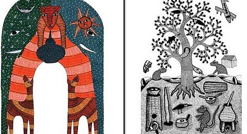 India is one of the few places in the world where traditional artists are our contemporaries, and not confined to our history, creating a rare privilege for those who work with indigenous and folk artists who belong to ancient cultures, but live in the present. “This creates an interesting relationship between the past and present. For example, there are three generations of Gond artists today – those who have always lived in the village, people born in the village who then moved to the city, and their children who grew up in the city. Interestingly, young Gond artists more accustomed to urban life still continue to be imaginatively linked to the forest,as well as to the memory of earlier ways of being. Conversely, city-based artists also feed back into village art.The rapid development of the art form has enabled fascinating conversations between the old and the new,” Gita and Arun elaborate.