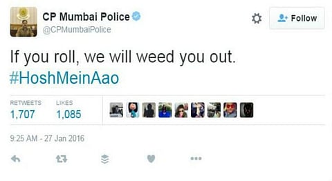 While a communication gap between a city’s police and its youth is understandable, the Mumbai police is all set to bridge that divide in the new digital age. Led by Mumbai Commissioner of Police Ahmed Javed’s witty Twitter puns, this force is exploring a whole new medium of communication to make their anti-drug point, and their audience is paying attention. From ‘rolling’ and ‘weed’ puns, to clever word play featuring specially created pictures, their #HoshMeinAao campaign is slowly making the Mumbai Police a must-follow Twitter handle.