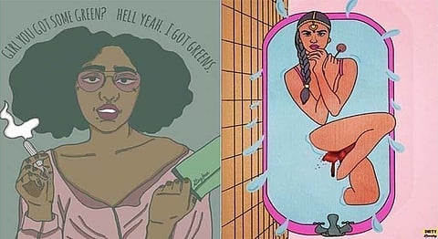 Her work at Prayag, the first ‘Grand Digital India Mela’ hosted in New Delhi consisted of an installation using only menstrual cups to create a larger one. She wants to draw attention to the immense amount of waste that we create from using disposable sanitary pads and other menstrual products and their impact on the planet. A major proponent of feminism, body positivity and empowerment, Lyla’s ideology speaks through her artworks that range from illustrations to blue pottery and crochet. Completely self-taught, Lyla’s work drew in a debate regarding the use of her menstrual blood as a dye for painting and fertiliser for plants, including Tulsi, considered sacred in Hinduism. The act of infusing menstrual blood with the soil that enriches the plant is not just for its nutrients, which she explains in an interview.