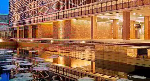 Conceptualized and executed by Studio Lotus, the design of Krushi Bhawan draws directly from its socio-cultural and environmental context. This intersection of craftsmanship and context is where the beauty of this structure lies. Expressing a unique visual identity, the distinctive brick façade of the building is inspired by Ikat patterns of Odisha handlooms, created from bricks that use clay in three different colours to represent the geographical diversity of the region. With the workspaces for the State Department and Directorates housed in the upper floors of the building, the ground level has been designed as a free-flowing public space that opens out into a plaza, fully accessible to the citizens and adding to the city’s social infrastructure. Concepts of an open plan facilitate a certain level of adaptability that helps a structure stay relevant over a long period of time.