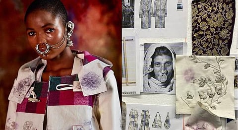 Growing up as a first-generation British-South Asian in the north of England during the 1980s, the designer draws heavy inspiration from his childhood home, stories and ancestral heritage. Surreal imagery, Mughal mosaics, embroidered clothing, and heavily decked floral wallpapers of his childhood home are evident influences in his collections.