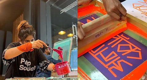 A 35-year-old Family run screen print studio based in Fort, Pritam Arts is determined to keep the art of old-school printing alive. They have curated a space of experimentation with scale, medium, colour, design, and impressions. With a small team of only three people, holding expertise in the fields of print, production and design the ‘hand pulled screen print studio’ offers a one-on-one experience in every workshop.
