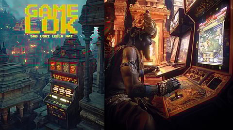 In Varun Gupta's imagination, a captivating fusion of ancient India and modern technology springs to life as 'Gamelok: Sab Uski Leela Hai'. Behold Gamelok, where life unfurls in a cosmic drama, and arcade machines wield power, shaping destinies with ease. At the helm stands the king, sculpting the world's fate guided by unseen hands, while his ministers meticulously orchestrate each move, ensuring flawless execution. Gamelok beckons us to ponder: is it the ultimate divine leela, unfolding every tale and life, even in our modern age?