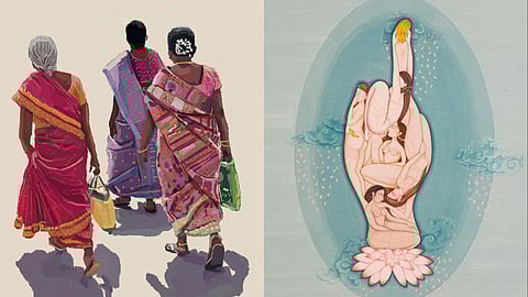 Namrata Kumar finds inspiration in the tapestry of human experience, particularly through travel and cultural immersion. This exploration fuels her art, primarily portraying Indian women engaged in various aspects of daily life. From flower vendors to women tending to household chores, Namrata's illustrations capture the essence of ordinary lives lived with grace and dignity. A recurring motif in her work is depicting women in saris, each with its unique style and design. By showcasing the sari as more than just clothing, Namrata elevates it to a symbol of a woman's journey, her heritage, and her strength.