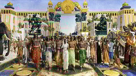 Italian artist Giampaolo Tomassetti has spent decades translating the Mahabharata into vibrant oil paintings that merge Renaissance techniques with Indian epic storytelling. From Arjuna and Krishna in the battlefield of Kurukshetra to the Pandavas entering Hastinapura, his paintings highlight universal themes of dharma and heroism while fusing European artistic traditions with Indian narrative forms.