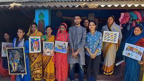 Some of the collectibles currently available on their website are picture books like 'Into the Gondverse', a book that features 26 original Pardhaan Gond artworks illustrated by Sachin Vyam, each paired with a verse that draws on traditional wisdom and the community’s deep relationship with the natural world by Achyut Siddu. There are also textiles like Chanderdi cotton-silk stoles with original hand-painted Bhil art.