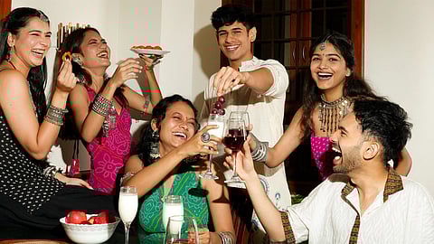 At its core, NISHORAMA’s philosophy is about reclaiming cultural pride through everyday wear. “Jhumkas with jeans, kurtas without occasion,” reads one of their taglines, a line that doubles as a manifesto for a generation redefining what it means to be Indian. Their latest Diwali collection, 'Tyoharcore 3', is a loud, joyful explosion of colour, prints, and silhouettes. From sharara sets to men’s kurtas, there’s something for everyone this festive season.