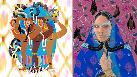When it comes to science fiction it's always men, war, territorial disputes, revenge or domination. And on the off chance that women or indigenous cultures are involved, the dystopian narrative never favours the feminine or marginalized; it doesn't even extend beyond our uteruses — either we can't have kids, or we don't want to but are forced into it like The Handmaid's Tale. Either the indigenous tribes can fight the robot-capitalists or get colonized. In fact, this is only the first time that I'm witnessing protagonized ethnic and ecofeminist themes represented in science fiction with painter and sculptor Rajni Perera's powerful characters.