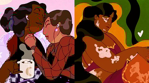 She never really came out to anybody, but rather she started making and posting gay art one fine day. Her art is a visual representation of her exploration of her identity - in the beginning, she laid out stories that prove that she exists in a community. A few months after that, she drew and wrote a self-portrait describing her complicated relationship with herself. And these days, she has begun making and creating a queer story of her own. In talking about the motifs of her works, she said, ‘I like portraying moments of tender intimacy, the quick hug or warm cuddle that makes us human. Right now, I think queer bodies are either extremely sexualised or completely erased. We are robbed of a gentle, mundane existence. I show the slow moments that force you to look at us and acknowledge that we are just as human as you are. You cannot call my art vulgar or unnatural and dismiss it. I won't make it easy for you to hide your cruelty in the guise of being an upstanding citizen. I'm not going to make it easy.’