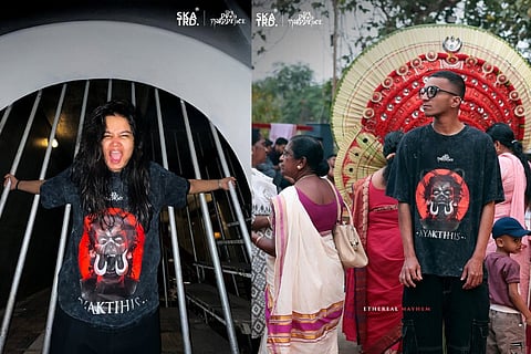 The success of this music video collaboration then transformed into the 'ETHEREAL MAYHEM' collection. The collection is inspired by Kannur’s untamed spirit, drawing on from elements of both subcultures as well as Skatrd and TDT’s shared hometown. The front of the ETHEREAL MAYHEM shirt depicts the cover of TDT’s next album, showing a devilish creature with the acronym 'AYAKTIHIS', which stands for “As You All Know This Is How It Is”, written across the bottom. The shirt is vintage-washed and breathable, giving it a lived-in feel and a raw, distressed look. While the shirt itself may seem simple enough, it’s an ode to an unconventional, subcultural existence in a homegrown town, a testament to the power of individuality that exists not in spite of our backgrounds, but because of them.