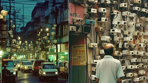 Artist Varun Gupta has created a visual series titled 'CCTV Nagar', a hypothetical city where CCTV cameras watch your every move, every word, and even your thoughts. An overwhelming amount of cameras take over the visuals, portraying the surveillance using symbolism. This dystopian reality highlights the fading value of privacy as individual freedom and rights are continually infringed on in society. Showcasing the reality where inhabitants are unable to live a private life. Capturing an existence when individuals are constantly monitored by an authoritarian regime.