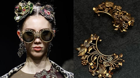This weekend we're bringing you 'The Futuristic Bride' — a jewellery installation by Kavya Potluri. Kavya Potluri's modern bride is a captivating blend of elegance and boldness, embracing a futuristic fashion-forward style. She gracefully wears a rustic metallic cape making her look like a cosmic being from another world, stepping into a dream like reality. Her sunglasses add an element of intrigue to her ensemble. With an enigmatic allure, a delicate black veil gracefully drapes over her, adding an air of mystery to her presence.