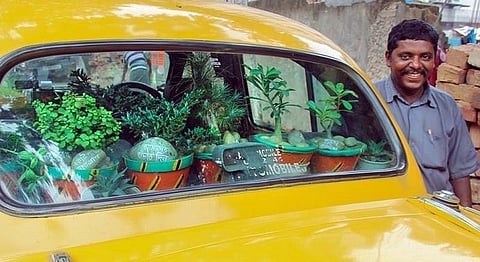 The vehicle that Dhananjay drives is not his own. He was forced to sell his own taxi eight years ago to arrange funds for treatment following an accident he suffered. However, the owner of the cab Amrish Singh respects the driver’s passion. “He is one of the safest drivers you can find and also maintains the vehicle better than most. When I first asked him to drive my car, he told me that he would decorate it with plants. I agreed and am happy to be a part of the cause,” said Amrish, who owns five more taxis and drives one of them himself.