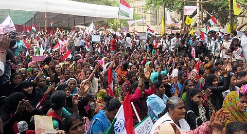 Close to 150 police officers stood by, and the number of protesters kept growing. As each new set of fiery demonstrators got off the train at Masjid station and walked to the junction, they chanted slogans loud and proud, and were met with a chorus of applause and approval. Half were women, if not more, and screams of ‘Mahila shakti aayi hai, nayi roshni layi hai’ echoed through the area.