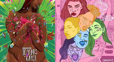 Feature image by: Gaysi Family (poster 1: “10 Years Of Joy” by Adrija; poster 2:“10 Years Of Resistance” by Priyanka Paul)