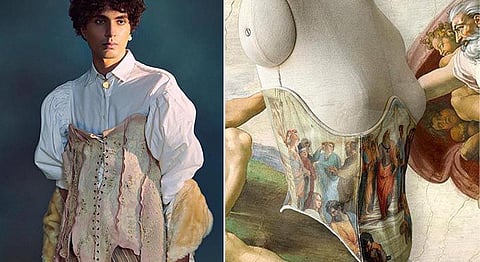 Inspired by the Victorian and Edwardian eras, Yash creates modern-day corsets in accordance with the individual measurements of the client; exaggerating shapes according to their preferences. His spontaneous instincts are evident in all his garments where random objects, prints and even sketches act as embellishments.