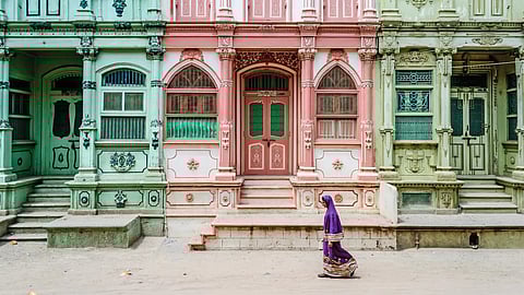 Hidden at the heart of Siddhpur — a historic town in Gujarat about a hundred kilometres from Gandhinagar — there are several late 19th and early 20th-century ‘Havelis’ (mansions) that look like they came out of a Wes Anderson film. Pastel-hued, and ornate with stucco-work and intricate neo-classical features, these palatial residences are known as ‘Bohravad’, or the Dawoodi Bohra neighbourhood.