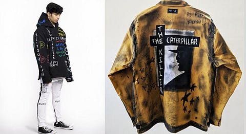 Working and learning from each new collection and project, the duo is attempting to refine their design process constantly. Other than tailoring the basic structure of their pieces, most of their products are done by hand whether they are distressed works or art works. For ensuring product longevity, they use quality paint and multiple layers of strokes for hand painted or written content that are signature to their pieces. For special pieces, they work by taking in the references and feedback and create pieces that are right for the customer. Most of all, design for them is about quality and aesthetics and the process comes down to creating pieces they would love to wear themselves.