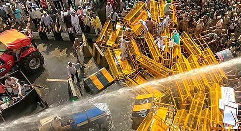 Water cannons, tear gas, barbed wires along with boulders and barricades to block the way of the marching farmers was used at the Haryana border. The Haryana Government alleges that the protests go against the restrictions (COVID-19 restrictions of social distancing) imposed to curb the Coronavirus cases as the state is facing a surge in cases.