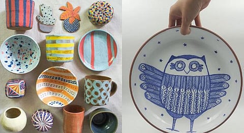 Founded by Ruddhi Vichare, Koorm Studio is a sole woman-run clay studio based in Pune that makes stunning handmade ceramic pieces. Selling plates, bowls, and cups in pastel and other shades, their popping colours and vibrant patterns along with their unique designs have us in a spell. The studio was set up by Vichare after she quit her data analyst job and went to Golden Bridge Pottery in Pondicherry to learn wheel throwing. All the products are made to order and can be customised to your preferences.
