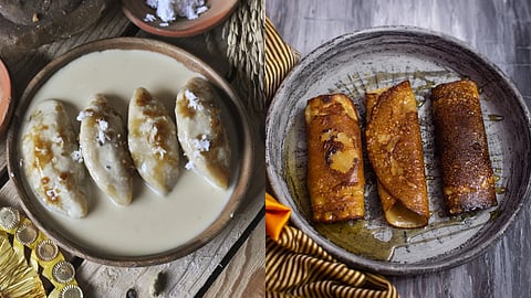 These sweet rice flour pancakes and dumplings — called 'peethay' or 'peetha' in Bengali — are an essential part of Bengal's winter celebrations. Whenever I'd visit my mamabari — Bengali for mother's ancestral home — in Bankura as a child, I'd eagerly, but patiently, watch my grandmother make peethay for the children. She'd wake up in the blue hours of dawn, even on those chilly winter mornings, and prepare all the ingredients on the wood-fired oven in the open courtyard of the old house. She'd boil rice flour in a pot of water mixed with molasses, constantly stirring the pot until the dough reached a cake-batter consistency, adding more flour or water as required, then knead and roll the dough into discs stuffed with khoa kheer — thickened and dried whole milk sweetened with sugar, molasses, or jaggery. Finally, she'd steam them, or fry them in ghee, depending on what kind of peethay she was making.