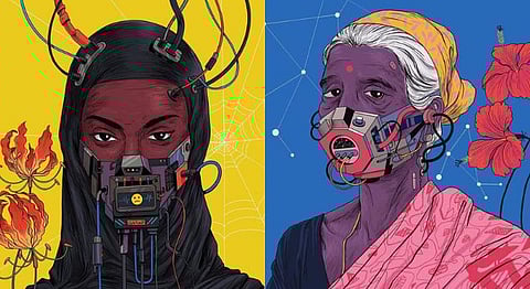 Reimagining these masks in an unbelievably creative manner is illustrator Muhammed Sajid. First in his face mask series is an illustration ‘Mask On’, which is of an elderly woman contrasted with a futuristic mask. The following illustrations, too, follow the same out-of-the-box philosophy of portraying masks on diverse humans in an inventive way.