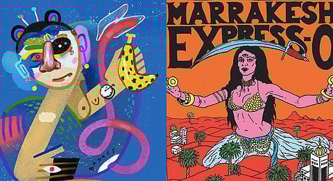 Well known for his zines like Old T-shirt and bio-comic on Ambedkar, Moulike’s art presents a unique depth and maturity. His Instagram gives glimpses into his distinctly-styled portraits, of ordinary people going about their day, such as Parsi uncles in the Irani cafes spread across the city. Moulik is that artist you see, who carry around their sketchbooks ready to quickly pencil in their observations, turning mundane moments into beautiful pieces of art. He is also the illustrator behind the poster of Homegrown’s upcoming event, Mumbai Music Week.